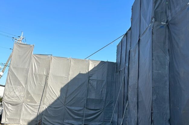 山口市にて、新築工事に伴う足場仮設工事を行いました。建物の形状や敷地条件を事前に確認し作業効率と安全性の